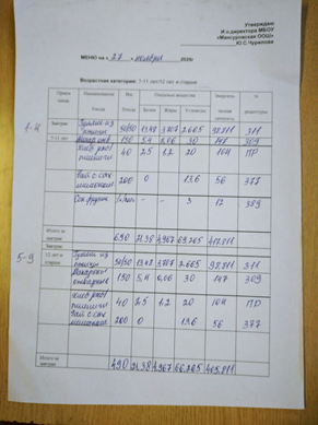 Акт проверки организации питания в школьной столовой за ноябрь 2024